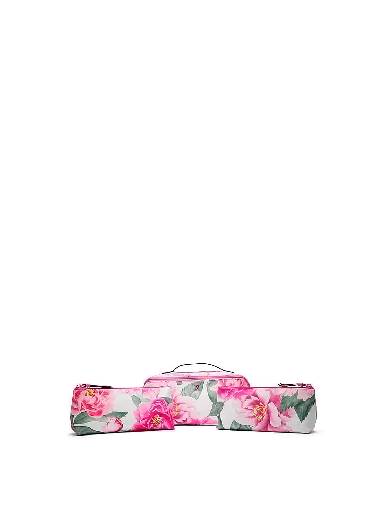 Three's a charm. This iconic makeup bag set fits all your must-have beauty products in one-two-three. Stay extra organized with the interior pouches.