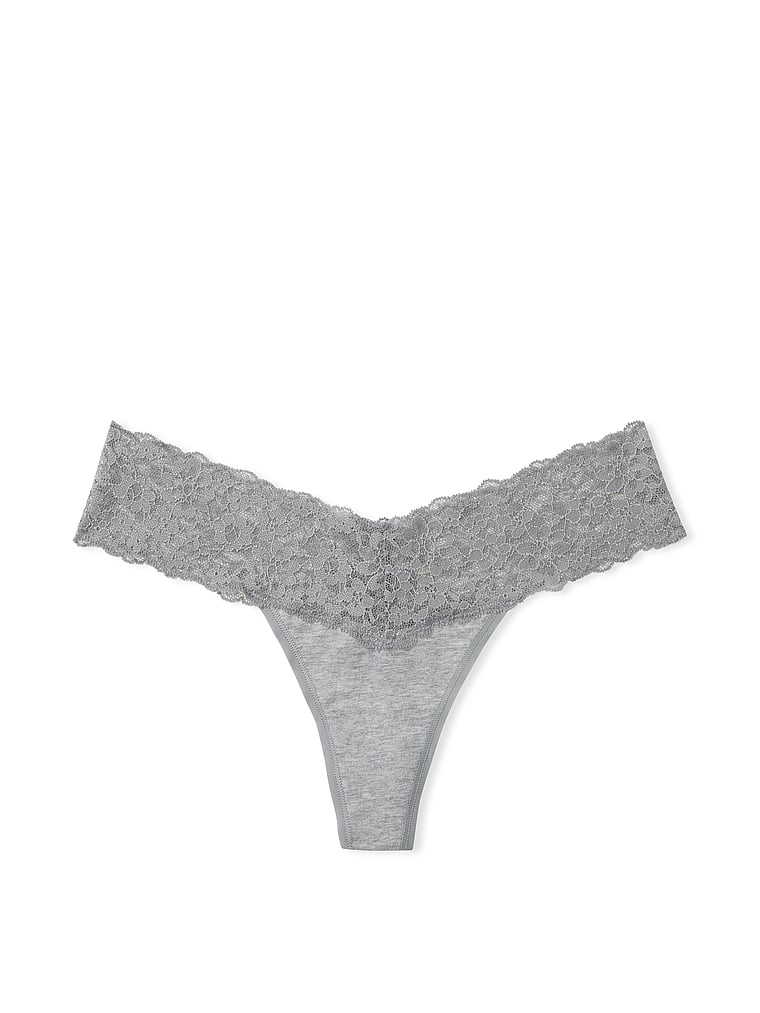 Crafted in a cool cotton blend with a subtle striped pattern, this Thong is trimmed all around with pretty lace and finished with a sweet, satin rosette.