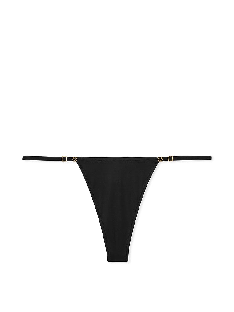 Victoria's Secret, Dream Angels Lace-Trim Thong Panty, Black, onModelSide, 1 of 4 Mackenzie is 5'10" or 178cm and wears Small