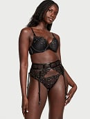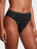 Stretch Cotton Heart Lace High-Leg Scoop Thong Panty
