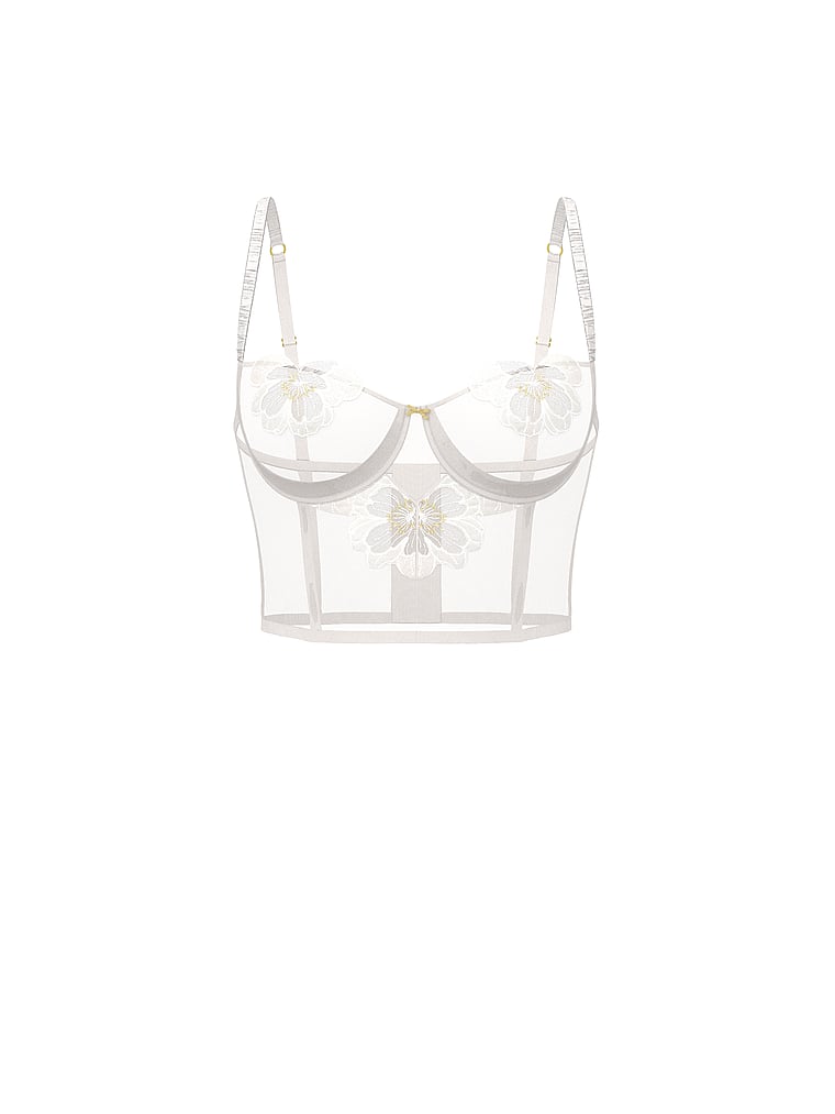 Celebrate your big day—and beyond—right down to your Lingerie. Designed in Switzerland, stunning peony embroidery is centered with shimmery metallic threads for a glamorous effect on this sheer Cor...