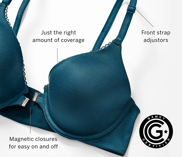 Essential styles meet thoughtful modifications. Featuring Bras and Panties that offer magnetic closures for easy on and off, front strap adjustors, and sensory-friendly fabrics.
