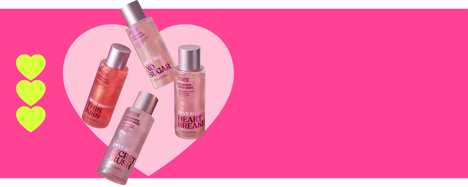 Explore PINK’s collection of light-as-air hair and body mists. Specially formulated to deliver buildable layers of deliciously-scented, all-over fragrance.