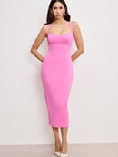 Midi dresses have a longer, mid-length hemline that falls in between your knee and ankle. These dresses are easy to style for more formal occasions with a pair of heels and a clutch. For a casual day out, throw on a pair of sneakers and style with a jacket. Trendy styles like bubble dresses, knit dresses, and tiered dresses usually come in midi length.