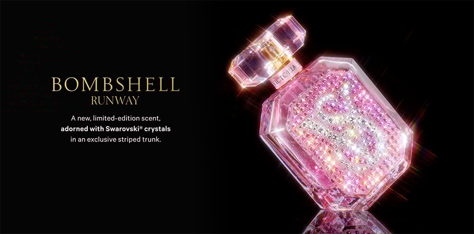Victoria's Secret, Fine Fragrance Bombshell Runway Swarovski® Crystal-Encrusted Eau de Parfum 1.7 oz ft. Reusable Heritage-Print Trunk, Bombshell Runway, onModelFront, 1 of 5