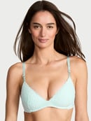 Our T-shirt bras are the go-to everyday bra. They provide a smooth, seamless look which makes them perfect for wearing under a t-shirt , sweater , and any form-fitting tops. Victoria’s Secret T-shirt bras feature molded cups that enhance natural shaping without any visible lines. Our T-shirt bras come with or without an underwire, which enhances lift and comfort throughout the day. They are designed with different levels of padding, like lightly lined full coverage bras for a subtle boost and push-up bras for more cleavage. Their versatility and focus on everyday comfort make T-shirt bras a daily essential, suitable for a variety of outfits and occasions.