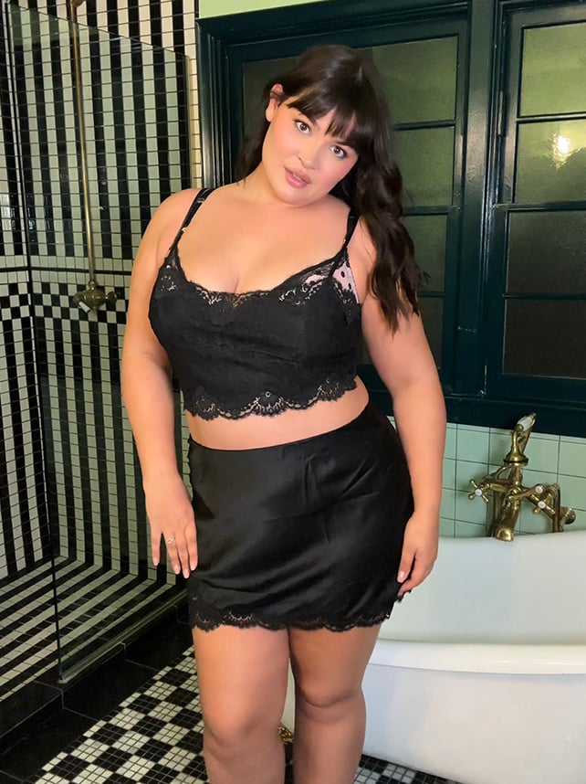 What could be more feminine than luxe lace paired with glossy satin? This event-ready Set is a stunning example, featuring a cropped lace Camisole and matching satin Skirt. Effortlessly sexy, each ...